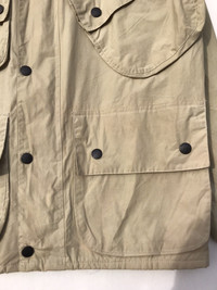 CODE ITEM: J0185 (As a reference for the seller) Brand: Barbour Made in: Bulgaria Size: 38 Please see manual measurement) Armpit: 22.5 inches Lenght: 30 inches Waist: inches Arm lenght: 25 inches (all measurement on lying flat) Material: 54% cotton 46% nylon Have defect Please see all the picture for more detail. *Please provide telephone number after purchase, We need to fill the postage form for delivery process. Thank you