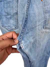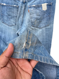 CODE ITEM: P0298 (As a reference for the seller) Brand: Levis X N. Hollywood Made in: Japan Size: 32 Manual measurement Waist: 32 inches Outseam: 39 inches Inseam: 27.5 inches Legs: 18 inches Tight: 24 inches Knee: inches Material: cotton Have defect Please see all the picture for more detail. *Please provide telephone number after purchase, We need to fill the postage form for delivery process. Thank you
