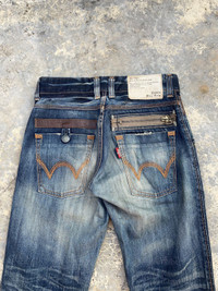 CODE ITEM: P455 (As a reference for the seller) Brand: Edwin Made in: Japan Size: 28 Manual measurement Waist: 30 inches Outseam: 42 inches Inseam: 33.5 inches Legs: 17 inches Tight: 23 inches Knee: inches Material: Cotton Please see all the picture for more detail. *Please provide telephone number after purchase, We need to fill the postage form for delivery process. Thank you