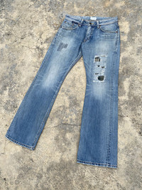 CODE ITEM: P450 (As a reference for the seller) Brand: Edwin Made in: Japan Size: 32x32 Manual measurement Waist: 31 inches Outseam: 41.5 inches Inseam: 32 inches Legs: 18 inches Tight: 23 inches Knee: 17 inches Material: Cotton Please see all the picture for more detail. *Please provide telephone number after purchase, We need to fill the postage form for delivery process. Thank you