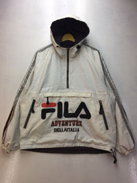 Brand: Fila Made in: China Size: M(please see measurement) Armpit: inches Lenght: inches Waist: 23.5 inches Arm lenght: 31 inches Material: 100% polyester One of Zipper holder missing.Please see all the picture for more detail. *Please provide telephone number after purchase, We need to fill the postage form for delivery process. Thank you