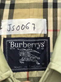CODE ITEM: JS0067 (As a reference for the seller) Brand: Burberry Made in: England Size: na Please see manual measurement) Armpit: 24 inches Lenght: 42.5 inches Waist: inches Arm length: 29 inches (all measurement on lying flat) Material: Cotton A button has broke Please see all the picture for more detail. *Please provide telephone number after purchase, We need to fill the postage form for delivery process. Thank you