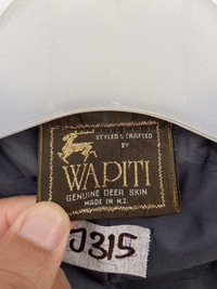 CODE ITEM: J315 (As a reference for the seller) Brand: Wapiti Made in: New Zealand Size: 42 Please see manual measurement) Armpit: 20.5 inches Lenght: 25 inches Waist: inches Arm lenght: inches Shoulder : inches (all measurement on lying flat) Material: Deer skin Please see all the picture for more detail. *Please provide telephone number after purchase, We need to fill the postage form for delivery process. Thank you